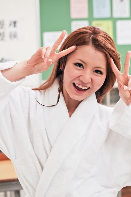 AV 69: Adorable Sakamoto Hikari in blue satin toys her trimmed pussy