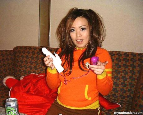 My Cute Asian: Amateur Asian girl with amazing melons toying her hairy pussy with a dildo