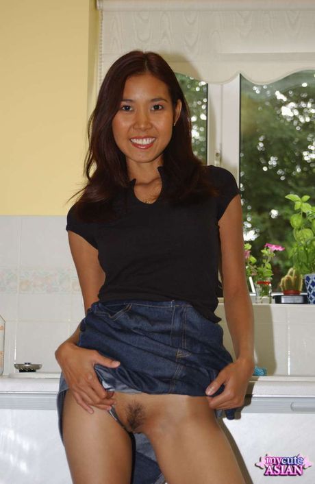 My Cute Asian: Amateur Asian girl with tiny tits strips and displays her hot ass in a kitchen