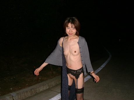 City Invasion: Asian amateur girl with small tits toying her hairy pussy outdoors