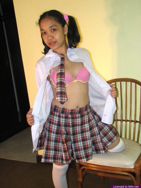 Barfine2cash: Asian schoolgirl amateur strips and unveils her tiny tits and pussy