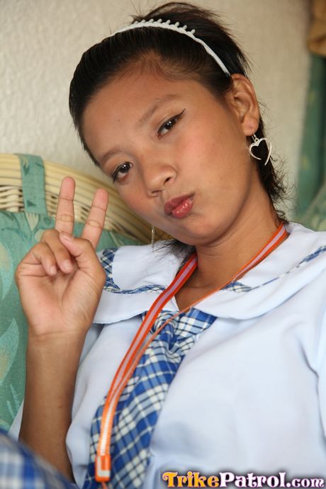 Trike Patrol: Asian schoolgirl Sally strips and shows her tiny tits and ass