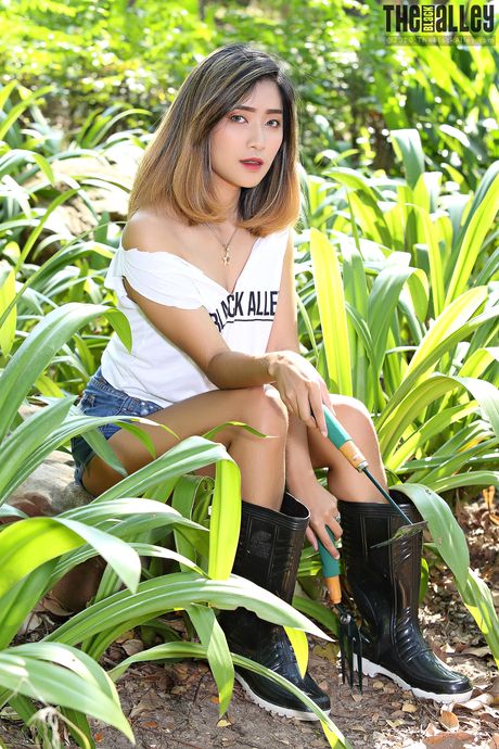 The Black Alley: Asian teen Apple strips off and reveals her tiny tits and ass in the backyard
