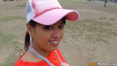Trike Patrol: Asian teen Charm strips and shows her tiny tits and ass before fucking