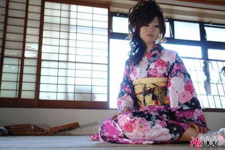 AV Idolz: Asian teen Chiaki strips and shows her hairy pussy in a solo