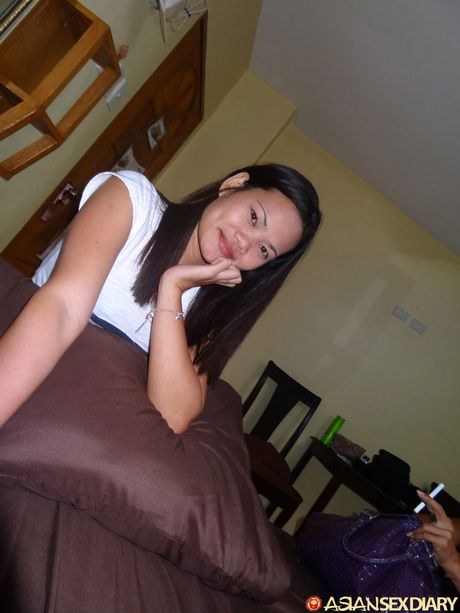 Asian Sex Diary: Asian teen Leann gets her hairy pussy licked and banged by two guys