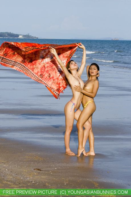 Hot Bunny Promotion: Asian teen Michelle strips and humps a beach toy in a solo outdoor