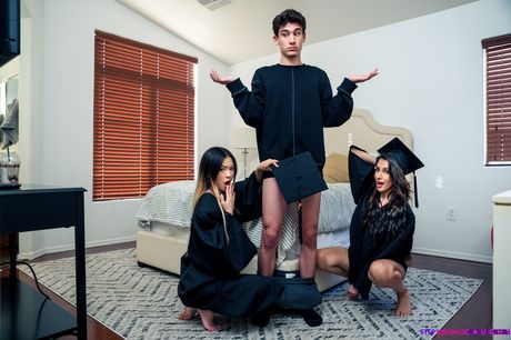 Step Siblings Caught: Asian teens Hime Marie and Lulu Chu are having a threesome with a guy