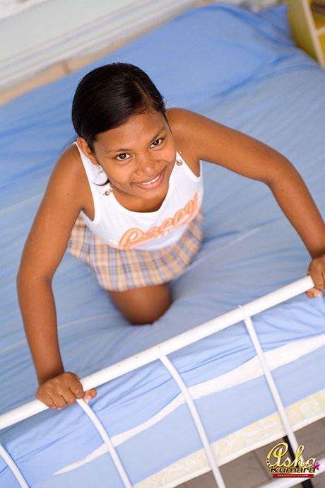 Asha Kumara: Brown Indian teen lifts skirt to show her white panties