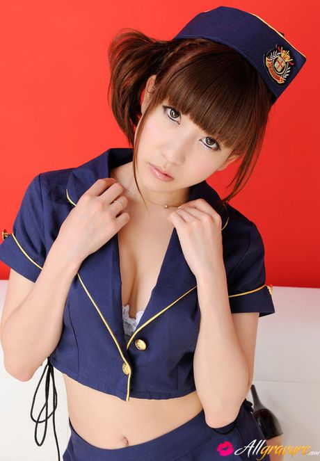 All Gravure: Chihiro Akiha Asian captain in short skirt shows hot cleavage