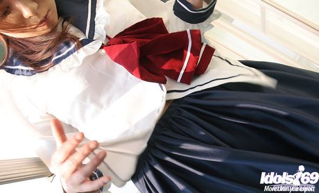 All Gravure: Cute asian school girl shows her naughty side in leather lingerie