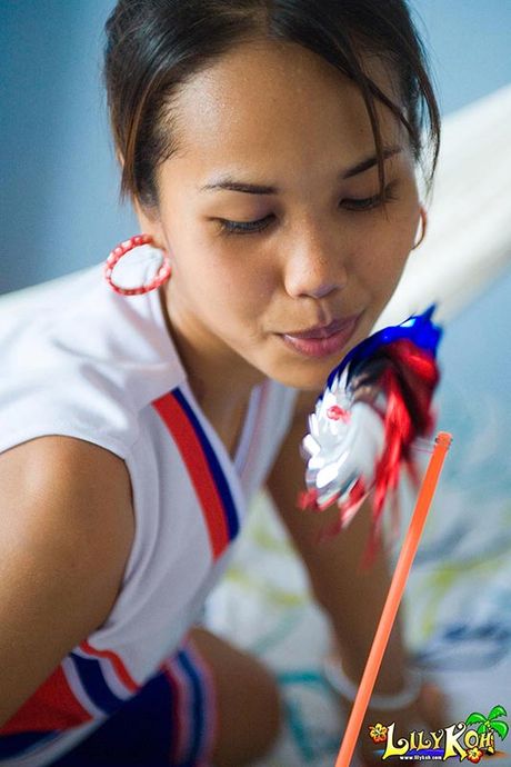 Lily Koh: Delicate Asian teen cheerleader flashes cotton panties