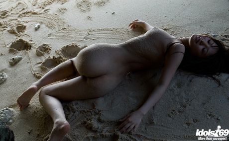 Idols 69: Delightful japanese babe Mari Misaki showing big boobs and hairy pussy on the beach