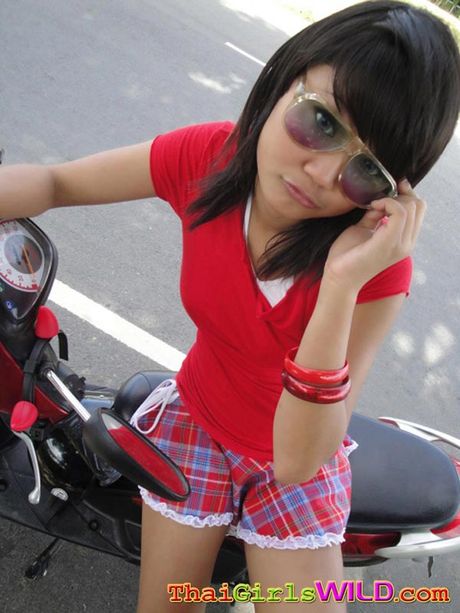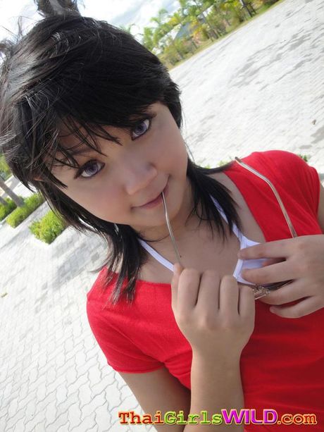 Thai Girls Wild: Febe is a sexy dirty devil schoolgirl showing her pussy in public