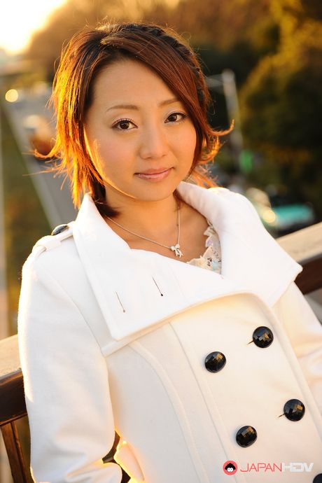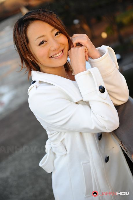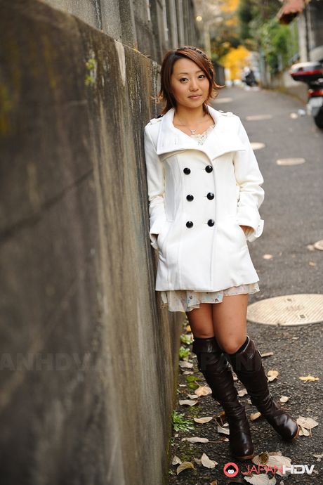 Japan HDV: Handsome babe You Shiraishi poses outdoor in her white coat for camera