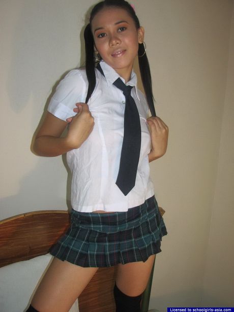 Schoolgirls Asia: Her name is "Caresse" she strips from her school uniform and she is sexy as hell