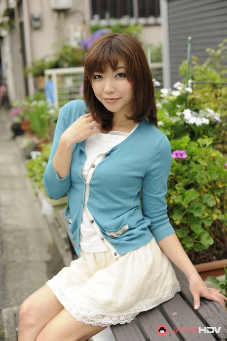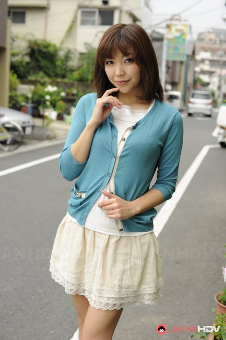 Japan HDV: Hot Juri Kitahara in blue sweater and lace skirt is a perfect model.