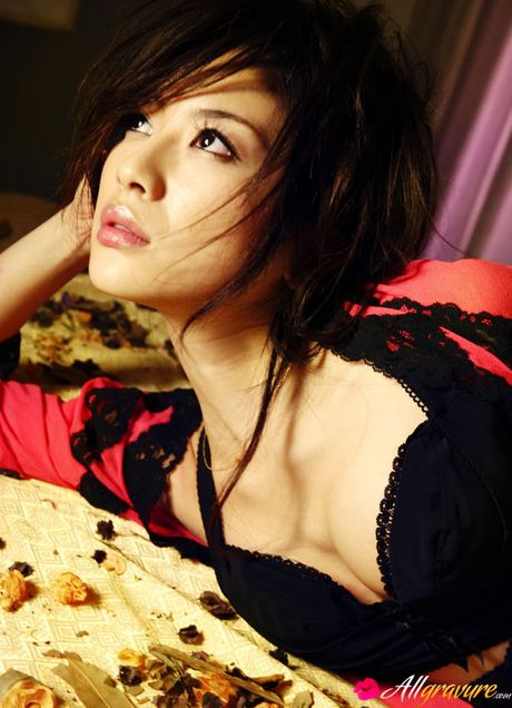 All Gravure: Incredibly sensual gravure idol babe seduces in black lingerie