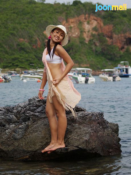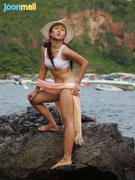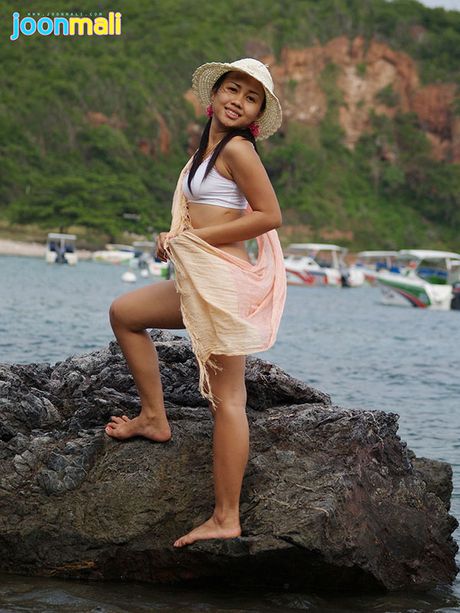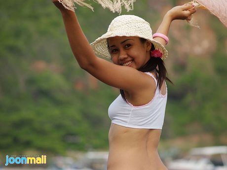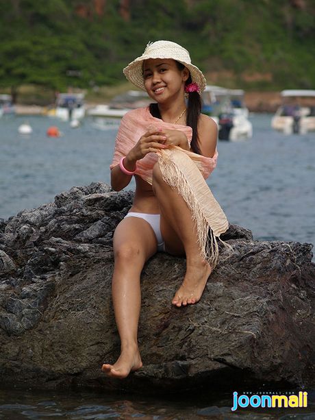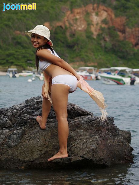 Joon Mali: Joon Mali blows kisses wearing just a panty set at ocean