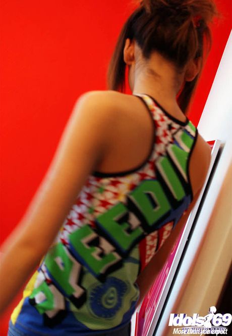 Idols 69: Lovely Asian model shows her pert tits and her round hot ass under her thong