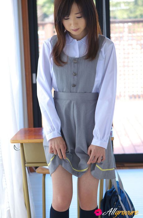 All Gravure: Mio Ayame Asian smiles and shows ass in panty under uniform