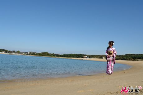 AV Idolz: Perfect Asian babe Chiaki strips and shows her hairy pussy in a solo