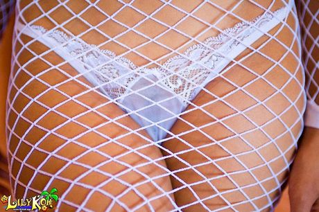 Lily Koh: Porcelain Asian girl in sexy white net lingerie