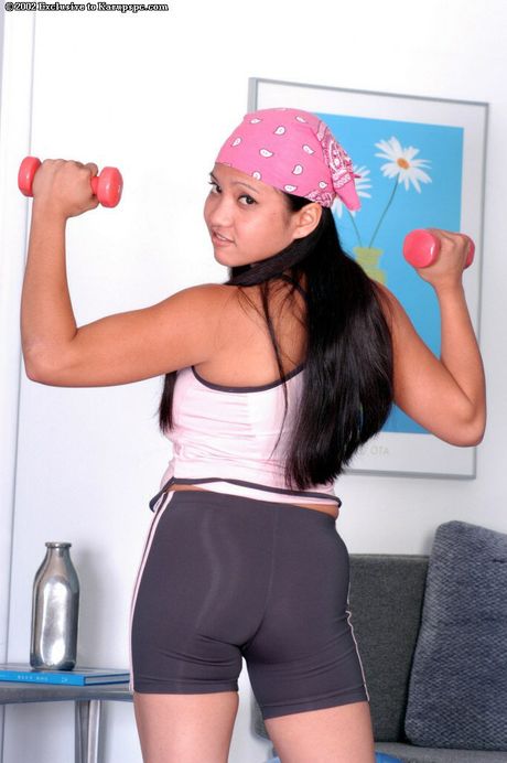 Karups Private Collection: Rangy philippine teen Loni in fancy shorts shows big knockers and jerks off