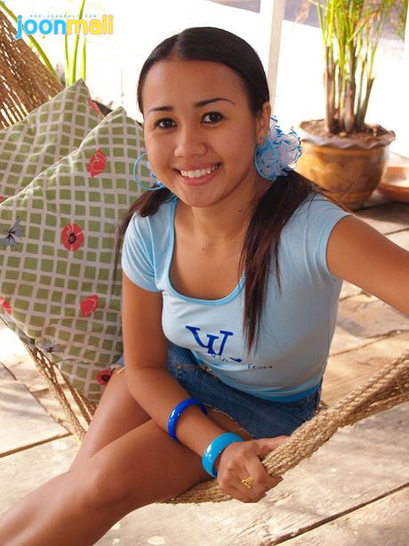 Joon Mali: Round face Joon Mali in a tight top and short denim skirt