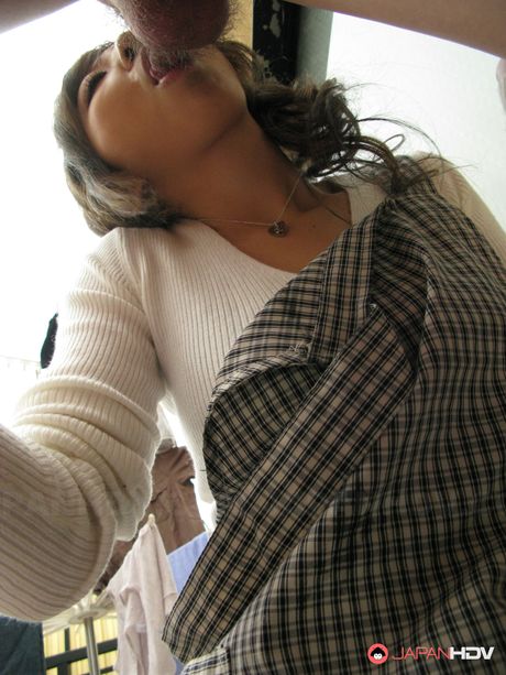 Japan HDV: Rui Hazuki sucking her needy hubby on the balcony and swallowing cum.