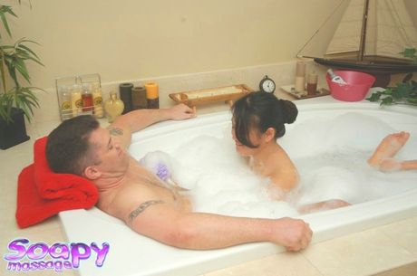Nuru Massage: Shapely girls Jackie Lin and Miko Sinz exposing hot bodies in bathroom