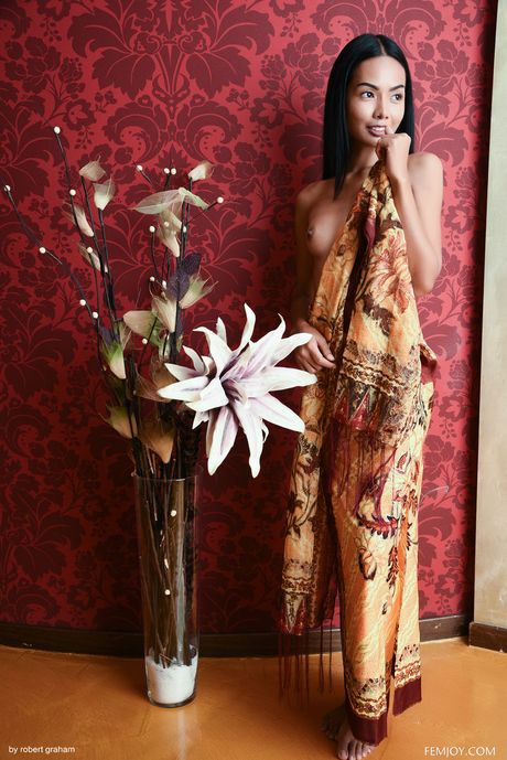 Femjoy: Skinny Asian teen Magen strips and reveals her tiny tits and ass