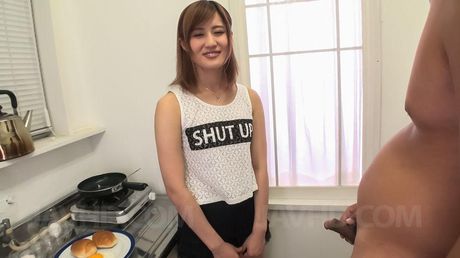 AV Idolz: Stunning Asian babe Ryo Takizawa strips and shows her big butt in the kitchen