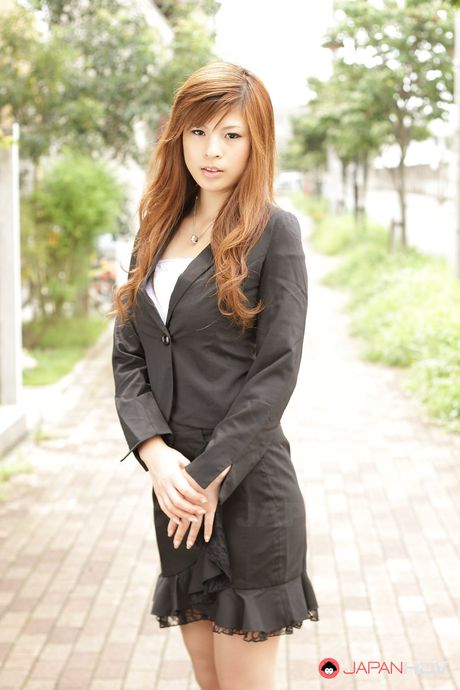 Japan HDV: Stunning redhead office lady Rina Kikukawa posing outdoors with joy