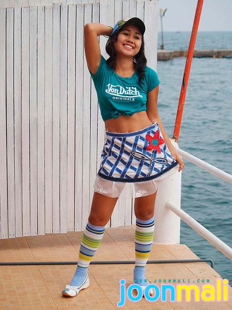 Joon Mali: Teen cutie Joon Mali in a trucker cap and denim jean skirt
