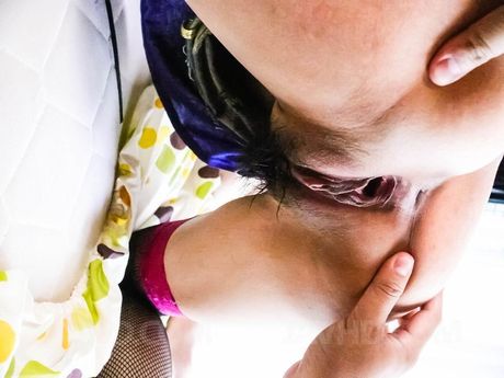 AV 69: Yuuno Hoshi in fishnets is fingered while sucking other man cock